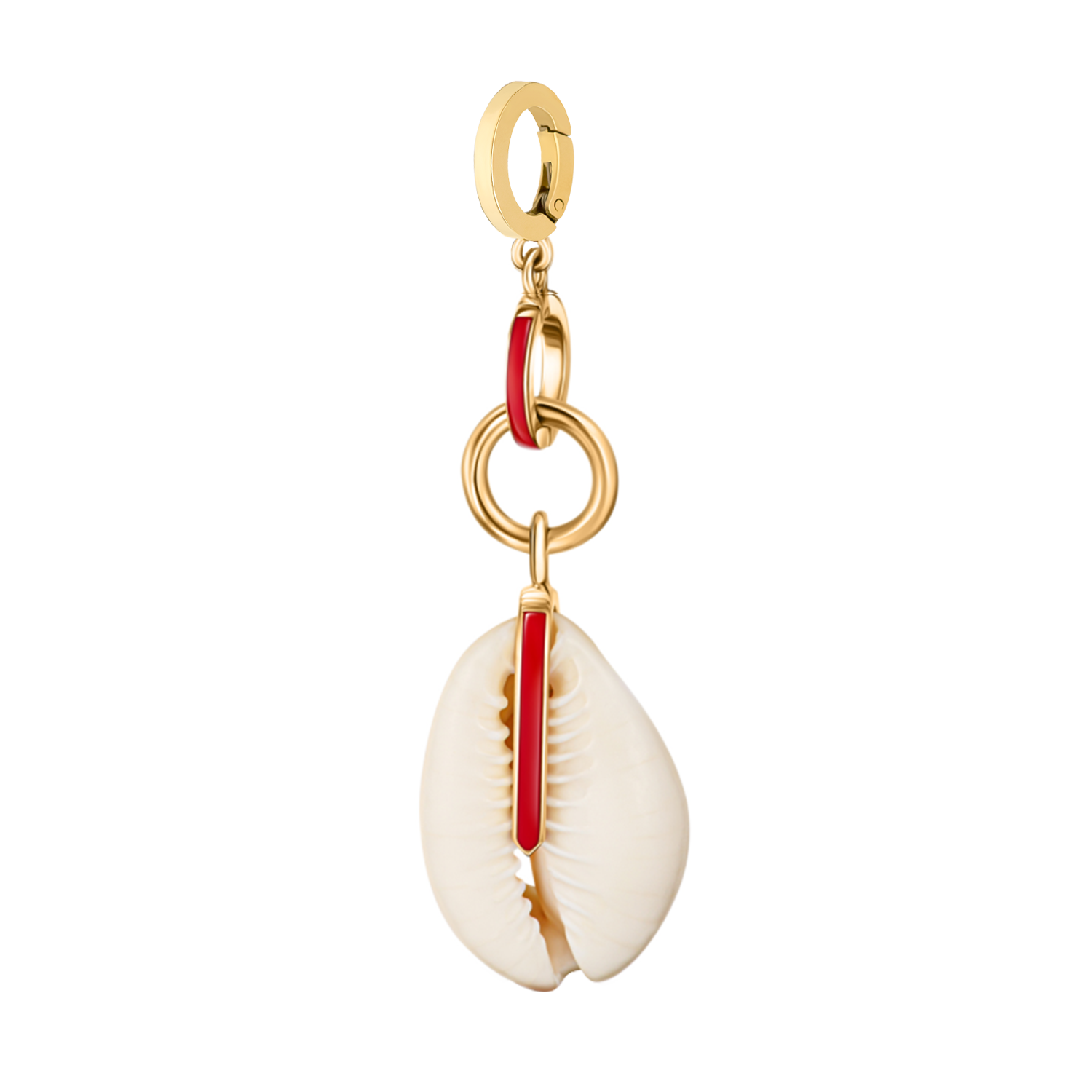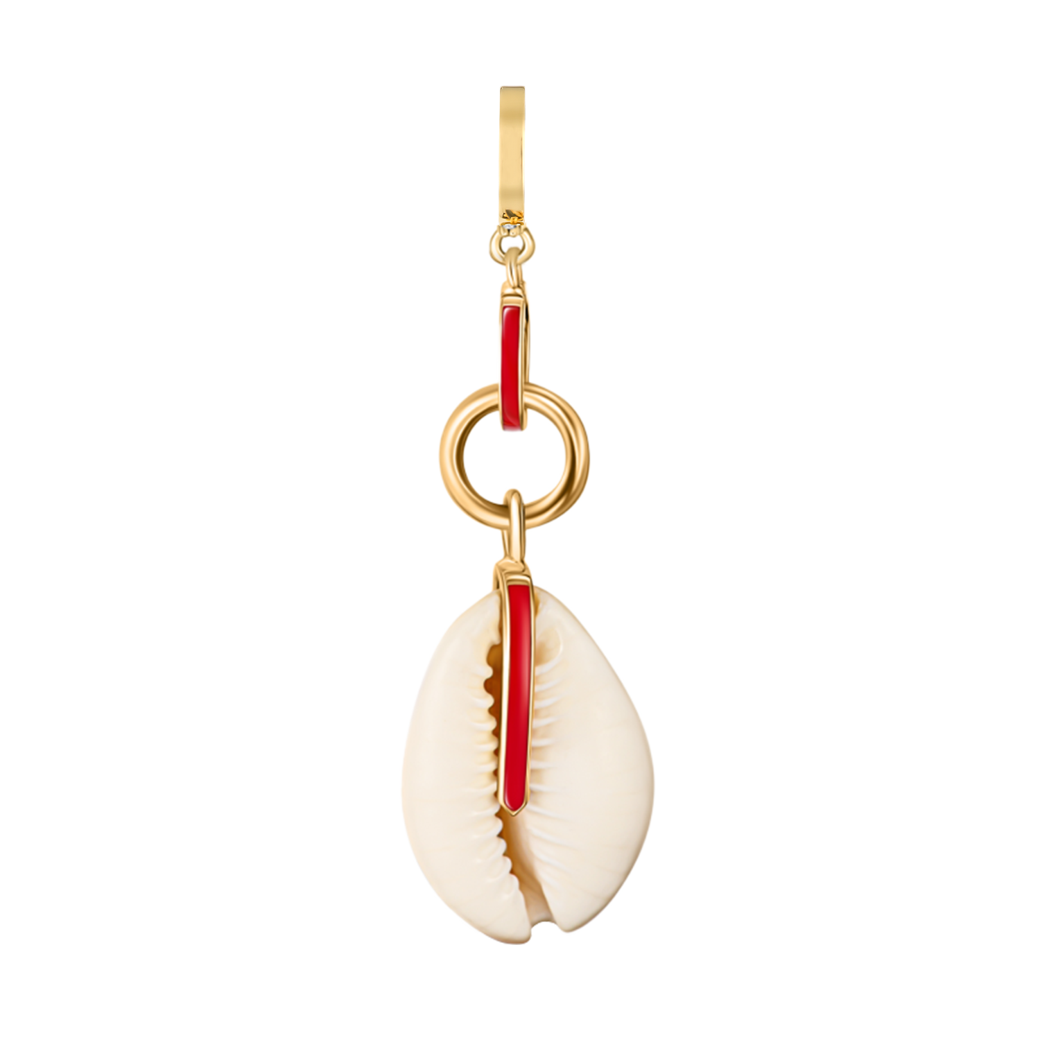 - 18K Yellow Gold PVD-Coated on Stainless Steel. Cherry Red enamel detailing.